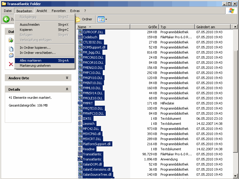 Sicherheitskopie Für eine Sicherheitskopie allein auf einem Datenträger z. B. eine CD wählst Du die Funktion "alles markieren" und brennst den gesamten Ordnerinhalt. Das ist dann das, was wir jahrelang gemacht haben, als wir noch CDs versandt haben. Wenn sich auch noch andere Sachen auf dem Datenträger Deiner Wahl befinden oder hinzukommen, empfiehlt es sich, den Ordner mit Inhalt aus Schritt 7, bzw. Schritt 4 beim Mac zu kopieren, da die Sache sonst unübersichtlich werden könnte. |